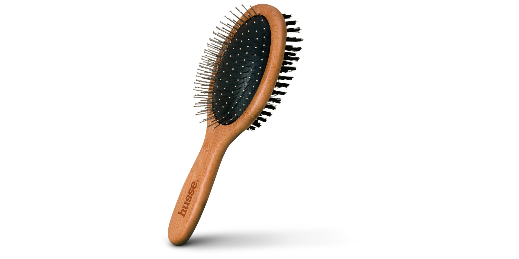 This dual-purpose brush has bamboo construction and handle, steel pins on one side and soft rubber air cushion with boar bristles on the other. It is designed for pets with short to medium coats. Use the side with rounded steel pins to gently detangle the fur and remove the undercoat, then use the side with the boar brush to remove loose hair and debris. By using Borste regularly, natural oils are distributed in the fur to leave your pet with a healthy, shiny coat.