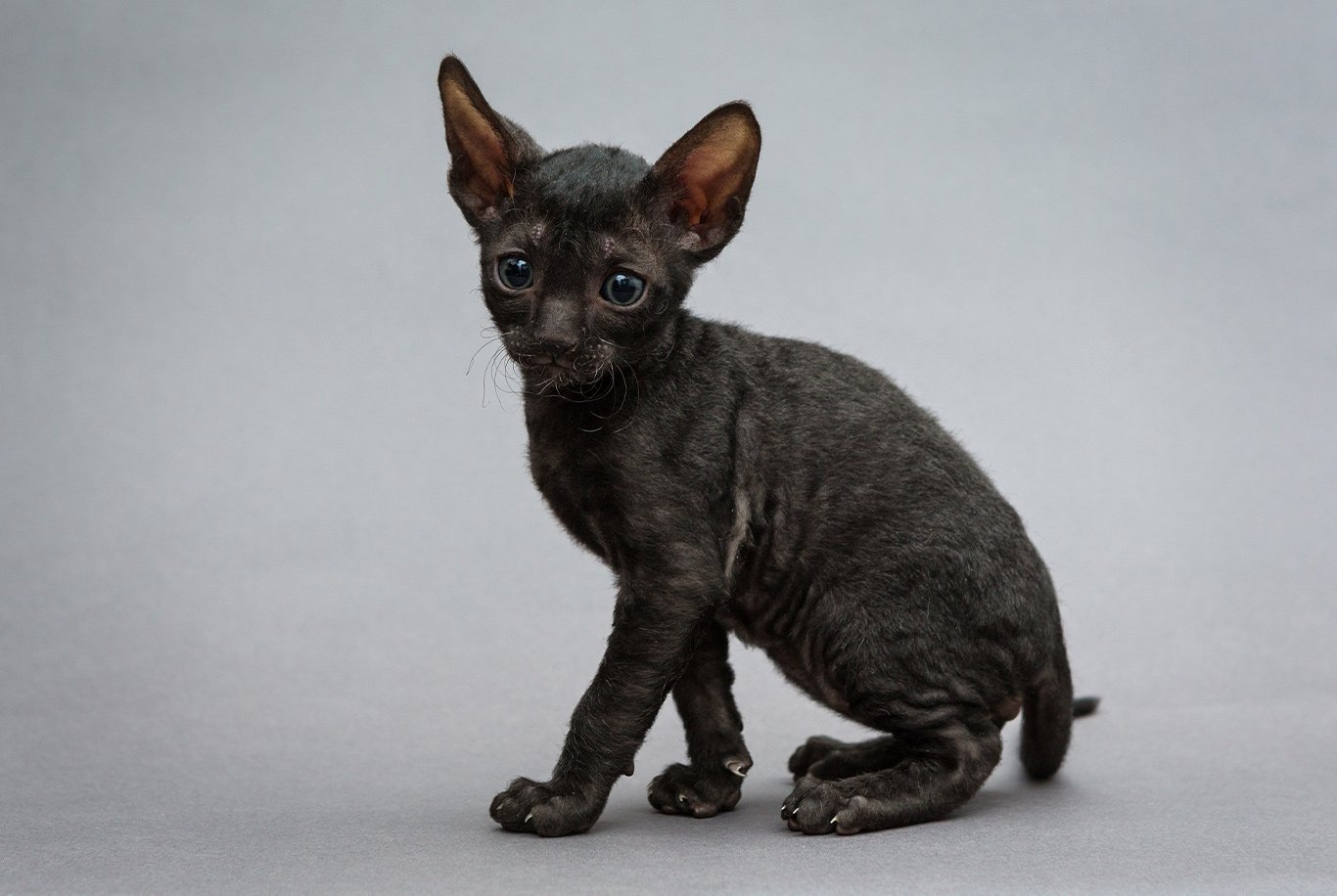 The first-ever cat with curly and fine hair was born In 1950 on a farm in Cornwall. Curly coat appeared on a single cat in the entire litter so the owner decided to backcross the kitten to his mother which resulted in the litter of cats with unusual, curly fur. Later on, curly-haired cats have been crossbred with Siamese cats, which resulted in the next litters of cats with curls in their fur taking after Siameses, especially in regards to their lean bodies, skinny tails and triangular heads adorned with huge ears. The usage of the word “rex” to imply some aberration originates from a rabbit show in Belgium, to which King Albert I of Belgium supposedly brought two curly-haired rabbits. Though the animals did not meet the breed standard, judges and show officials did not want to risk offending the king, so they accepted the animals and wrote the word “rex” (Latin for king) beside their names.